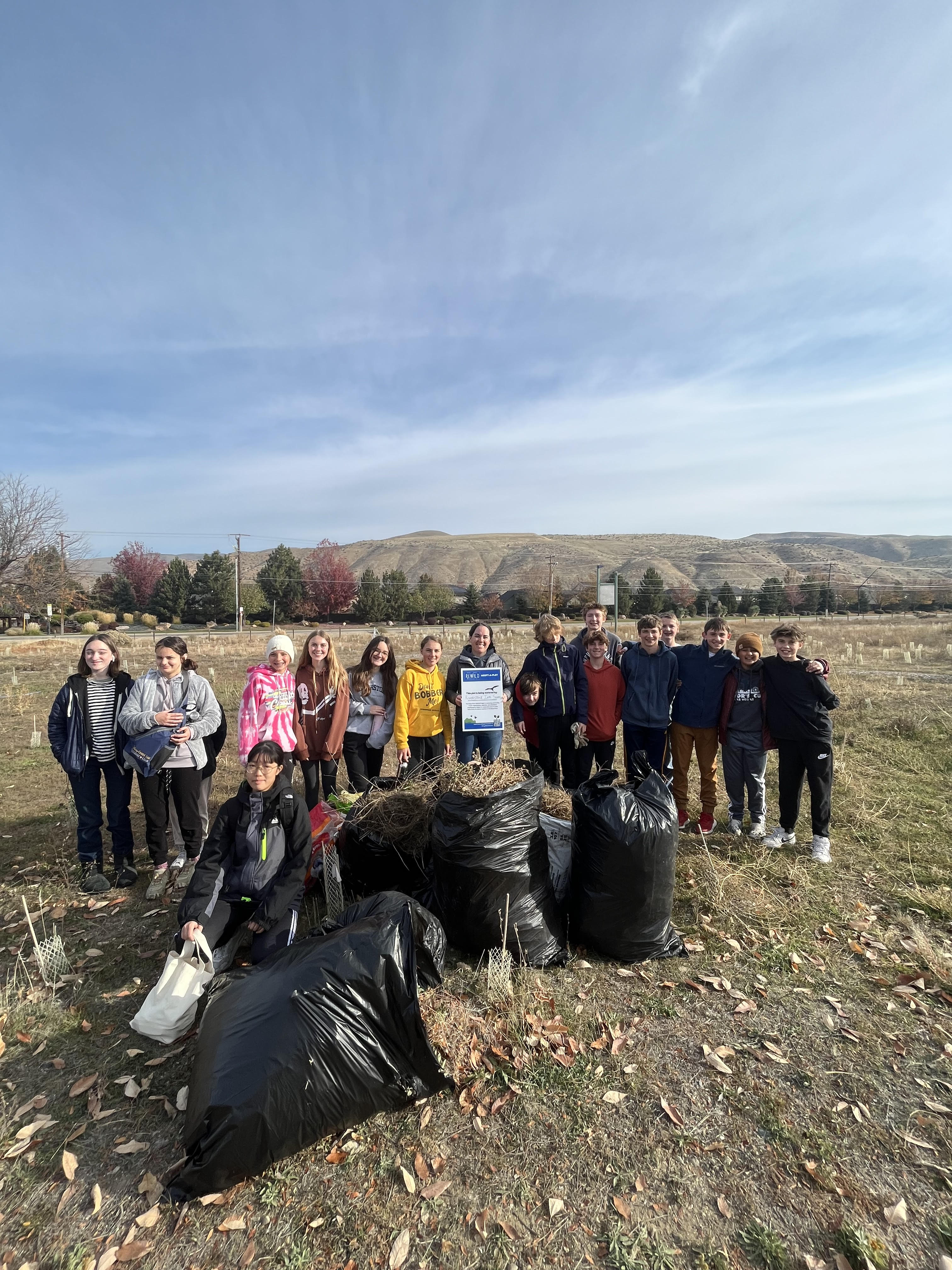 The pillar community and service has played a significant role within our middle school program in the month of November. For the majority of our Wednesday activities in November, our Outdoor Education Coordinator, Derek Wright, has been leading our Grade 6, Grade 7, and Grade 8 students in a community service project! This project is in collaboration with Golden Eagle Audubon Society. This project is called the Boise River ReWild Project and, according to Golden Eagle Audubon’s website, the goal of the project is to restore 50+ acres of natural habitat along the Boise River (Boise River ReWild Project). How does Riverstone International School play a role in this project? Derek Wright states, “This project began around 2-3 years ago when Riverstone began their Wednesday program. I was looking for service opportunities around Boise that would be beneficial for students to partake in on our Wednesday activities, and I reached out to the Golden Eagle Audubon Society! Riverstone International School has since adopted a plot of land outside of the Idaho Department of Parks And Recreation. When we first adopted this plot, it was covered in Rush Skeletonweed which is an invasive species in Idaho. For this community service project, we’ve been bringing Riverstone students and staff to this plot of land to remove this invasive species and then plant native species to Idaho!”